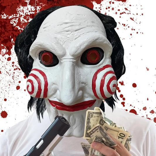 Halloween Mask Scary Chainsaw Massacre Jigsaw Saw Mask Halloween Costume Party Props and Decorations, Cosplay Mask with Wig Hair