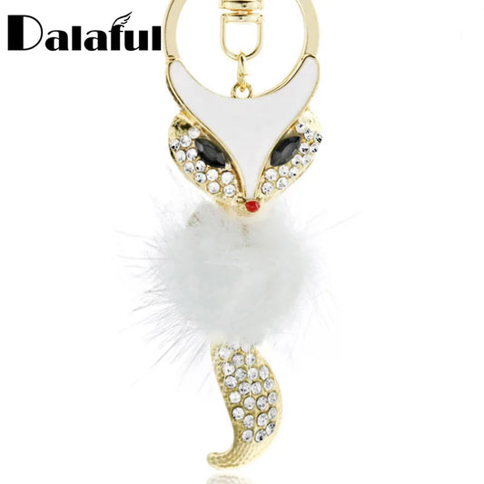 Cute Fox Fur Key Chains Rings Crystal Hot Sale Bag Pendant Anime Keyrings Keychains for Women Keyholder for Car K384
