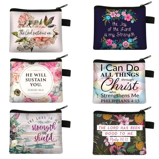 • Christian Bible Verse Coin Purse Women Wallet the Lord Sustains Me Money Bag Small Handbag Floral Purses ID Credit Card Holder
