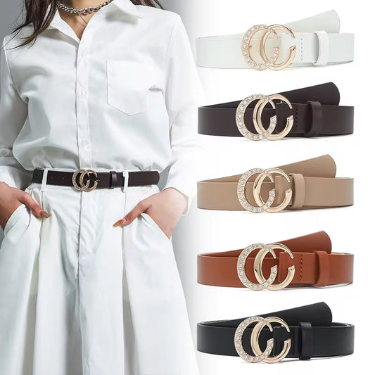 • Women'S Leather Belt Accessory: Antique Silver Double C-Ring Buckle
