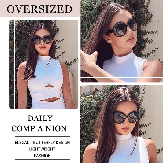 • Oversized Polarized Sunglasses for Women, Ladies Vintage Thick Big Frame Sun Glasses Shades (Shiny White)