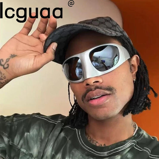 Cycling Rimless Y2K Sunglasses Men Women Trendy Gradient 2000'S Wrap around Sun Glasses Punk One Piece Goggles Fashion Shades